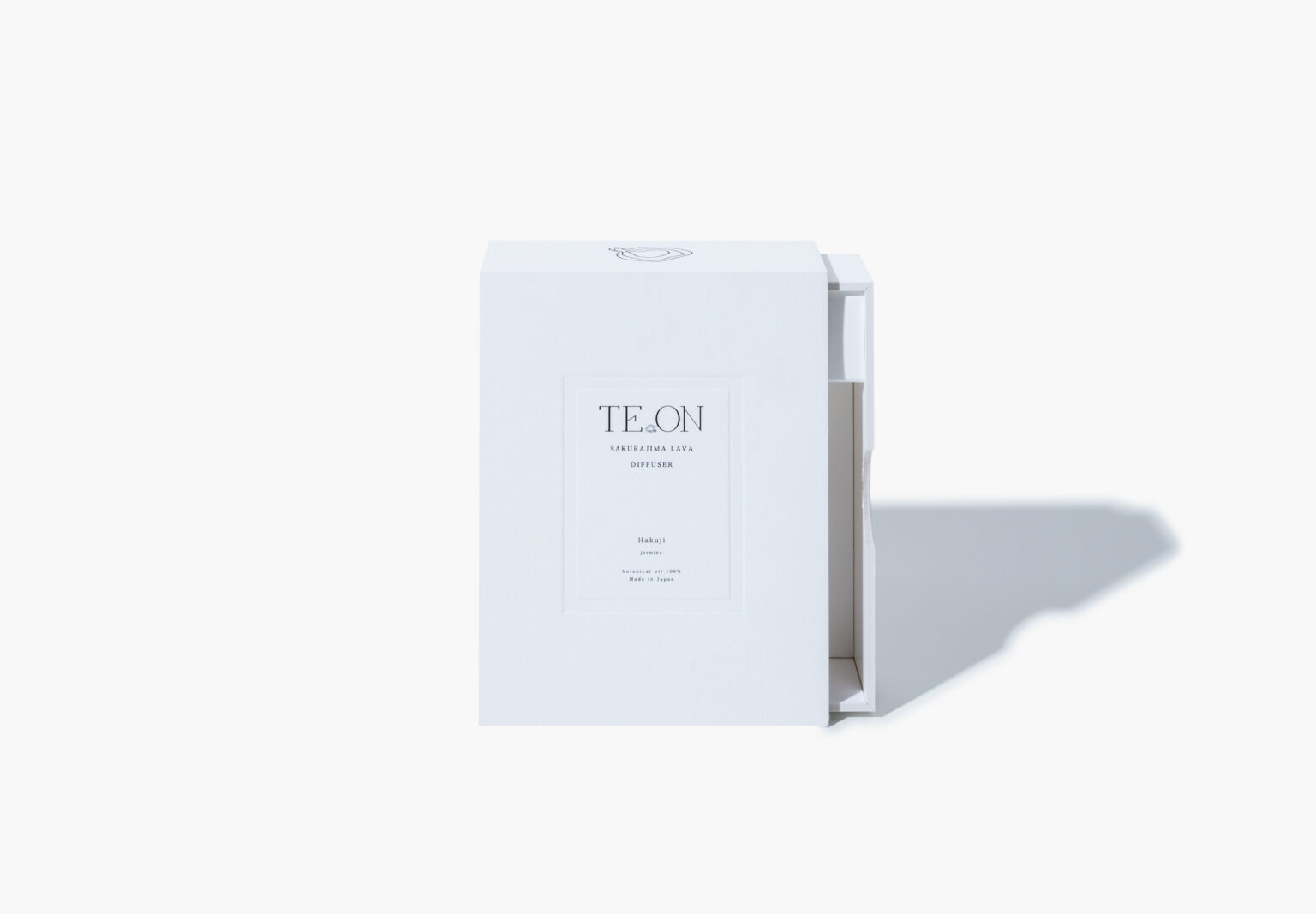 A box designed to slide out from the side. Aromatherapy oils and diffusers are set within a paper frame. The outer box features offset printing with debossing.